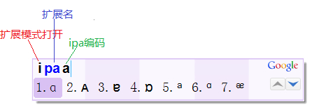 使用Google拼音输入法的扩展API,结合灵风输入法的编码方案(可根据自己习惯定制编码),编写一个简单的国际音标输入的“命令扩展”。